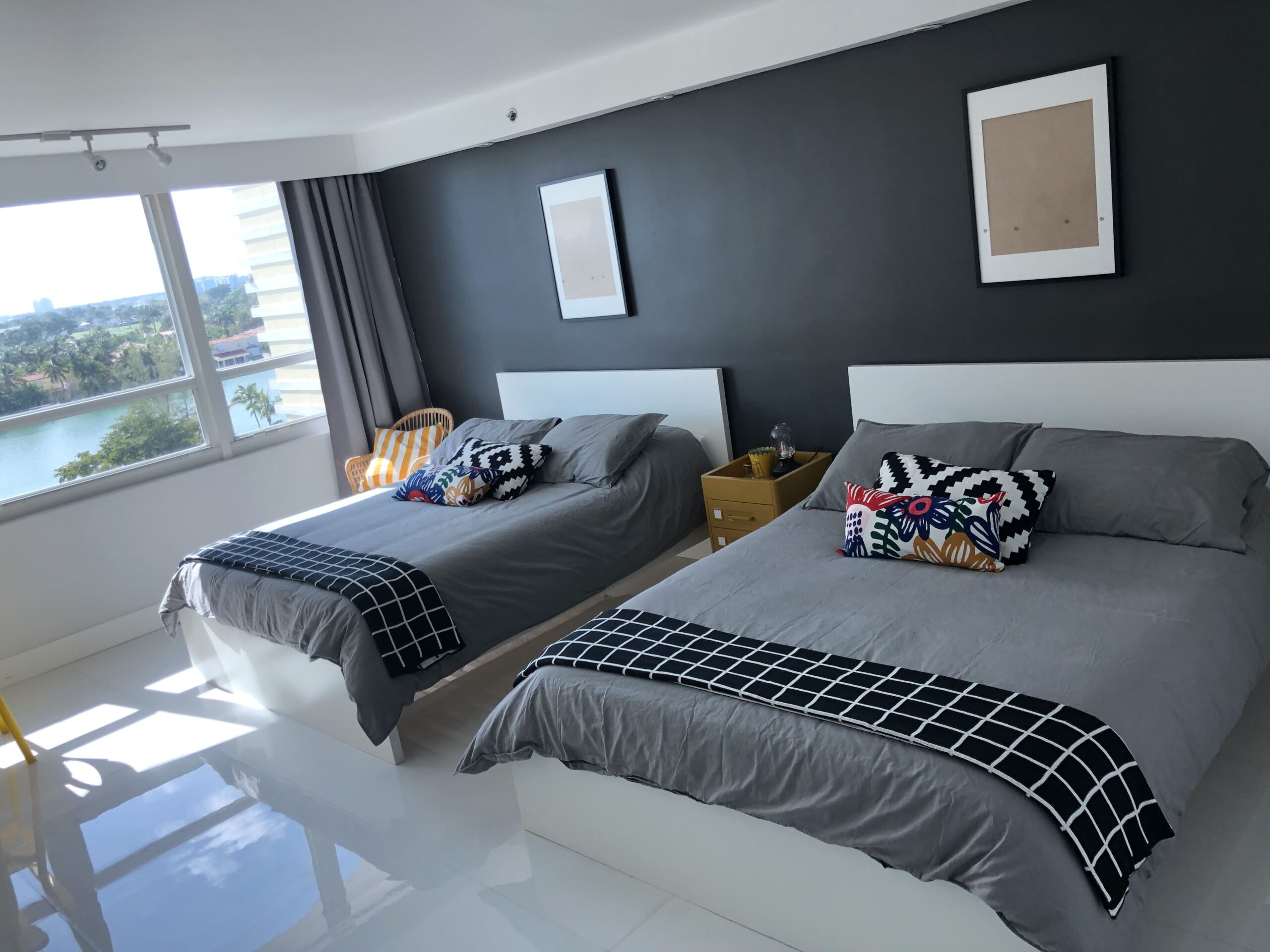 Excelente Studio con vista al Intercostal, Club de Golf de Miami, Miami City y Downtown. Cuenta con 2 camas tamaño queen y mesa comedor x 4 personas. También encontrarás un hermoso sillón de lectura desde donde podrás vivir hermosos atardeceres.