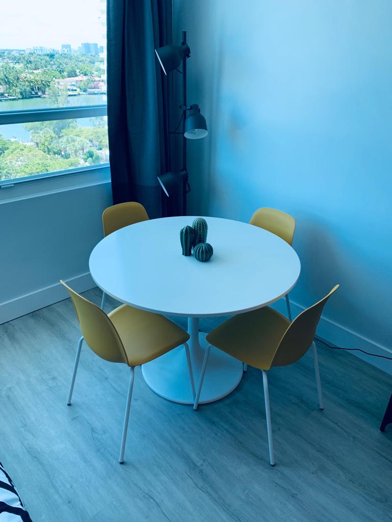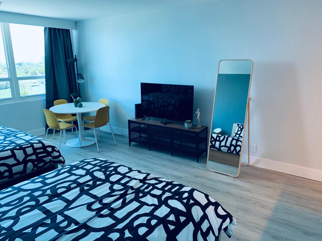 Excelente Studio con vista al Intercostal, Club de Golf de Miami, Miami City y Downtown. Cuenta con 2 camas tamaño queen y mesa comedor x 4 personas.